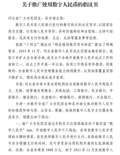 轉(zhuǎn)發(fā)“關(guān)于推廣使用數(shù)字人民幣的倡議書(shū)”