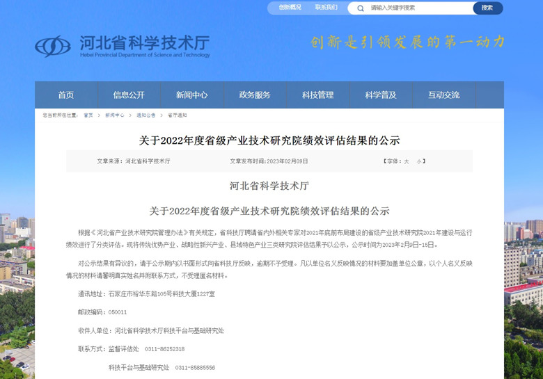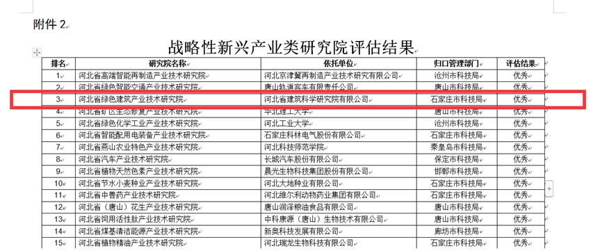 我公司建設(shè)運(yùn)行的“河北省綠色建筑產(chǎn)業(yè)技術(shù)研究院”榮獲省級產(chǎn)業(yè)技術(shù)研究院績效評估優(yōu)秀等次