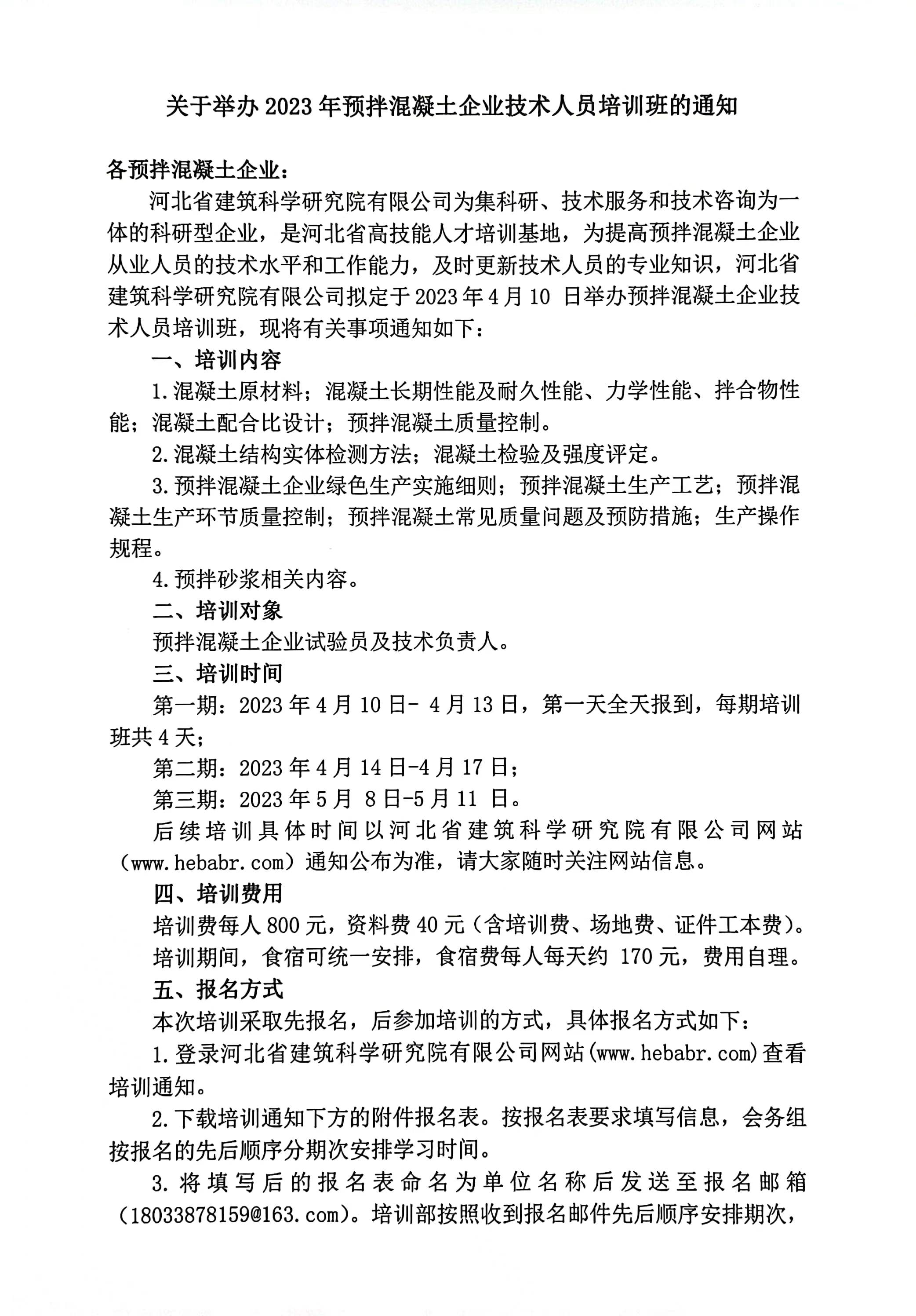 2023年預(yù)拌混凝土企業(yè)技術(shù)人員培訓(xùn)班報名表