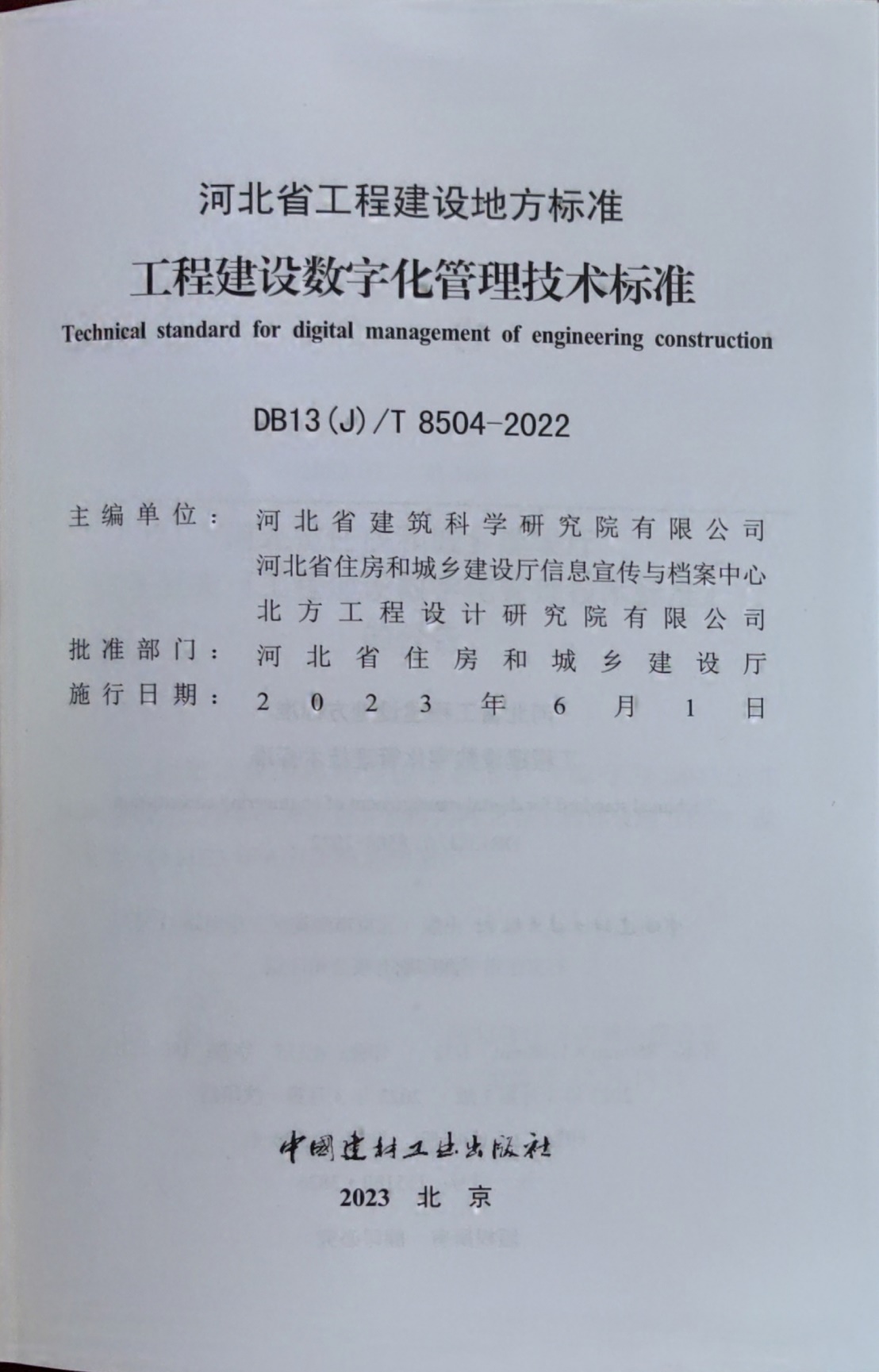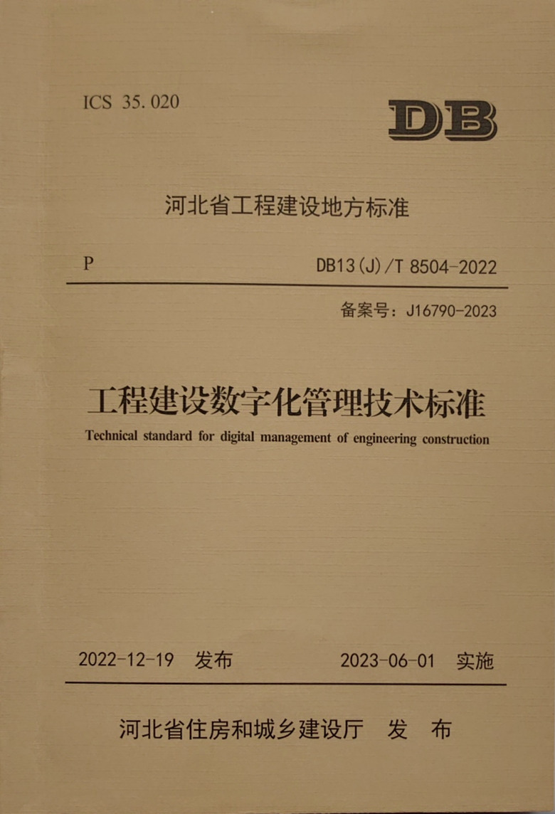 近日,由河北省建筑科學(xué)研究院有限公司、河北省住房和城鄉(xiāng)建設(shè)廳信息宣傳與檔案中心和北方工程設(shè)計(jì)研究院有限公司共同主編的《工程建設(shè)數(shù)字化管理技術(shù)標(biāo)準(zhǔn)》(DB13(J)/T8504-2022)已完成印刷,將于2023年6月1日起實(shí)施。